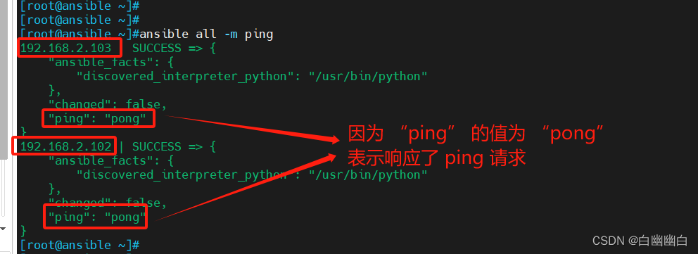 主控节点与目标节点: 主控节点是指运行 Ansible 的机器,而目标节点则是被管理的机器。Ansible 通过 SSH 协议与目标节点通信,无需在目标节点上安装客户端。