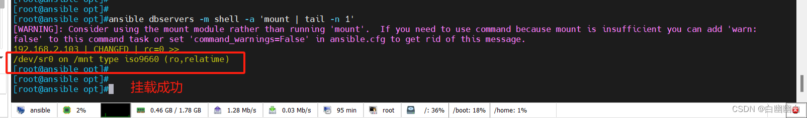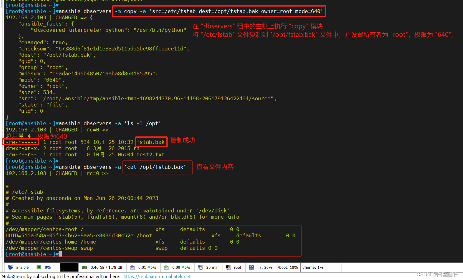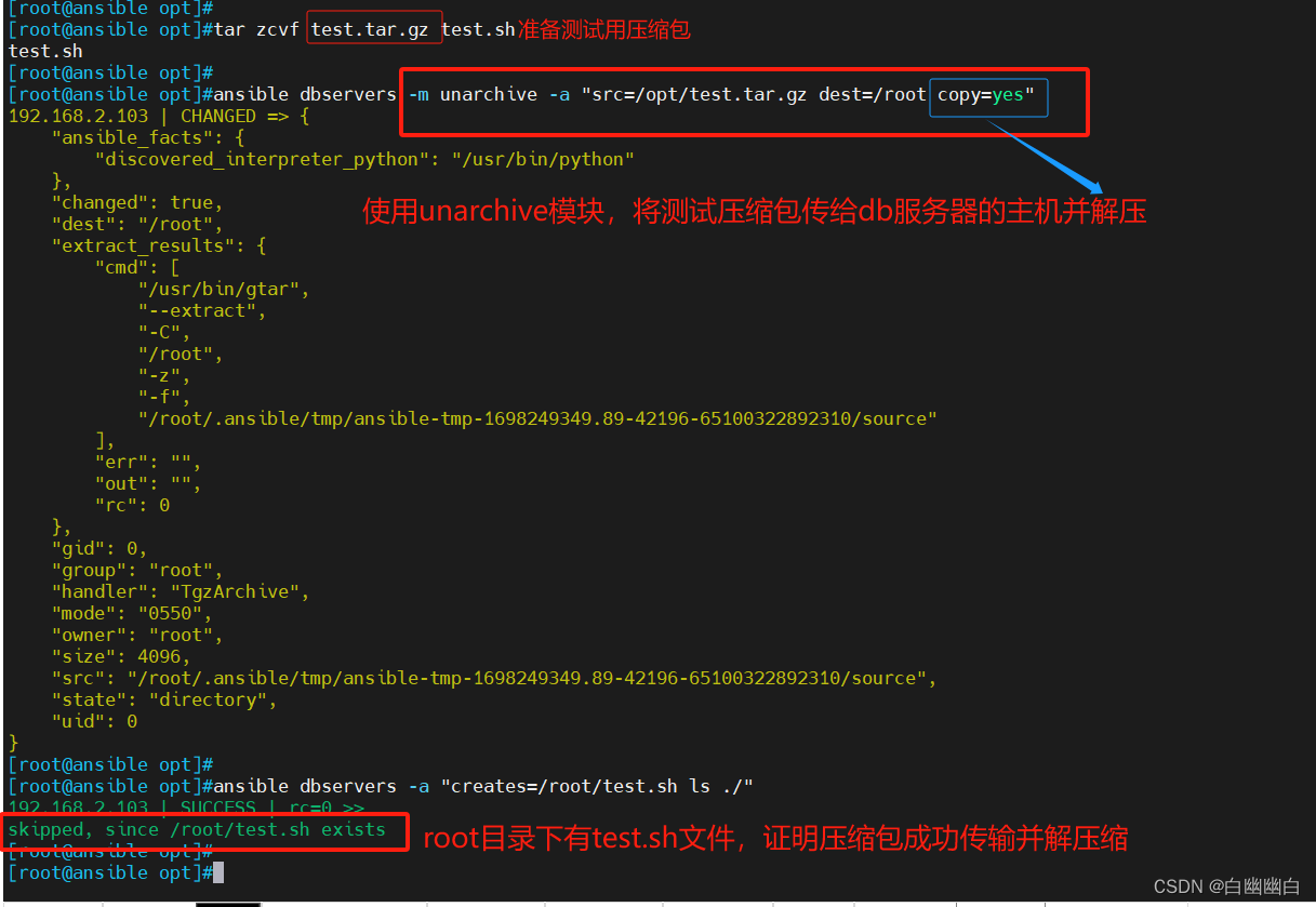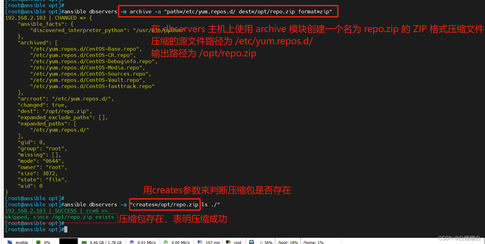 模块(Modules): 模块是 Ansible 的基本执行单元,用于执行具体的任务。Ansible 提供了丰富的内置模块,例如 yum、apt、service 等。