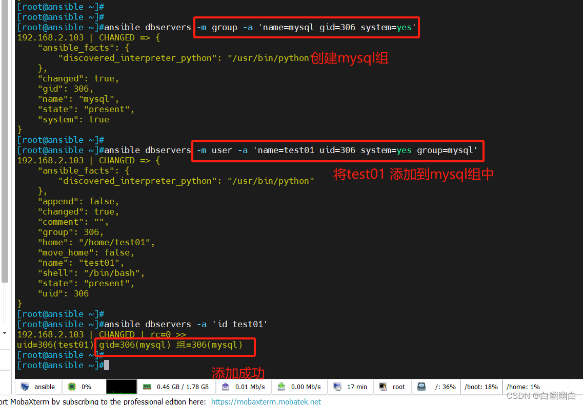 4)任务剧本编写,创建用户、创建组、安装软件、配置、启动等