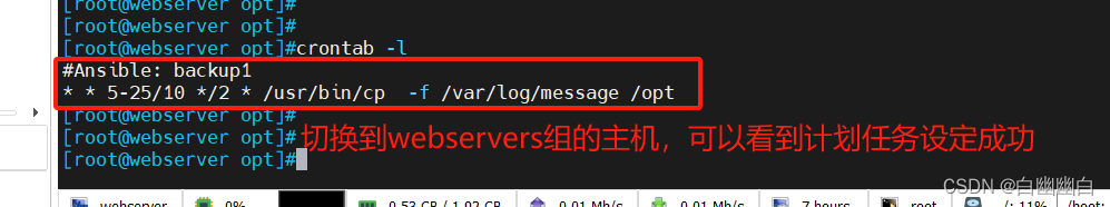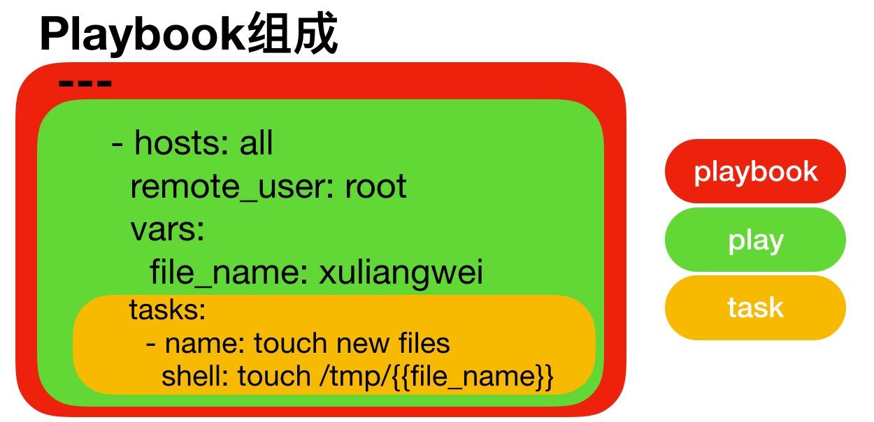 playbook模式(剧本模式) 是Ansible主要管理方式,也是Ansible功能强大的关键所在。playbook通过多个task集合完成一类功能,如Web服务的安装部署、数据库服务器的批量备份等。可以简单地把playbook理解为通过组合多条ad-hoc操作的配置文件。