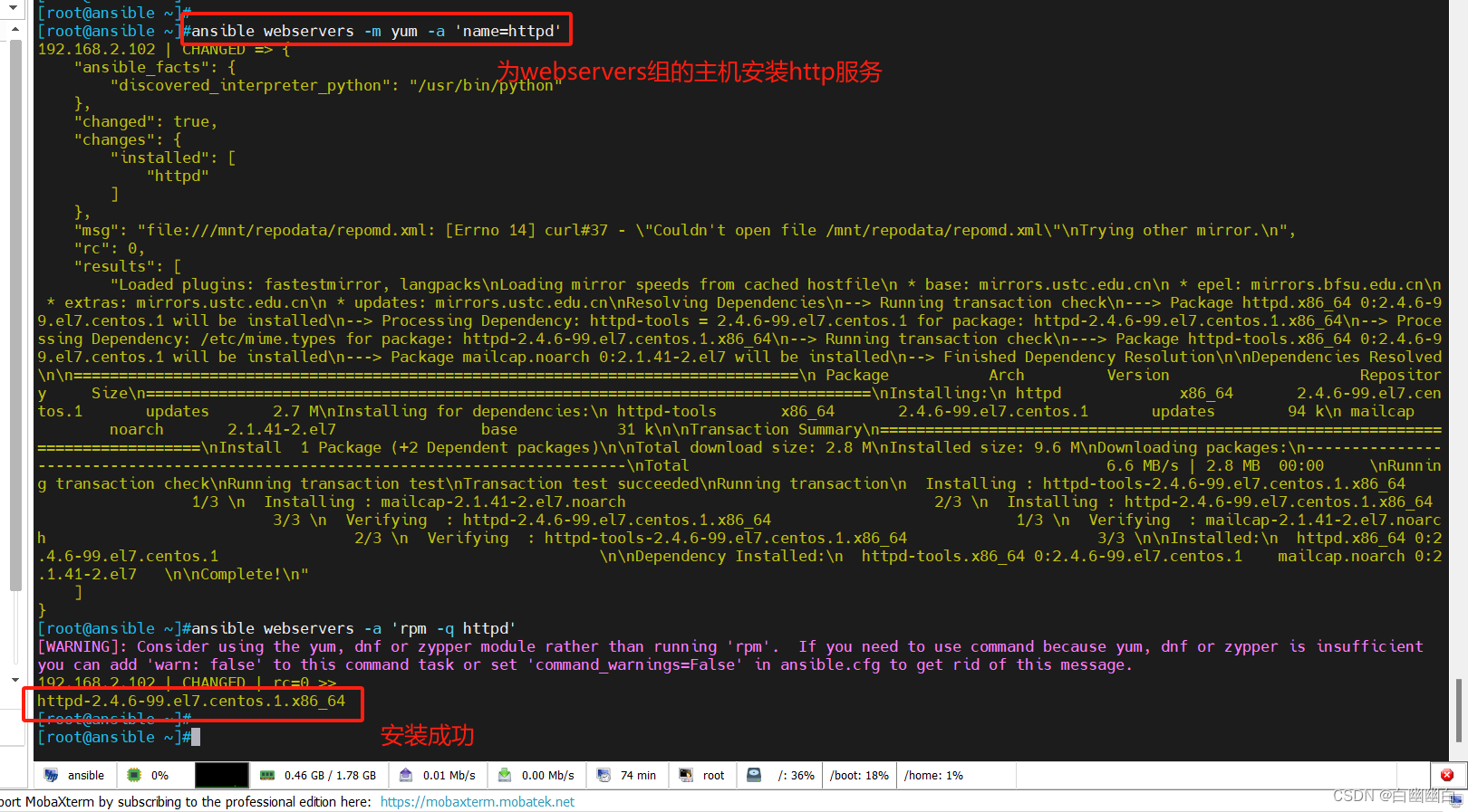 yum 安装是我们很熟悉的安装方式了。我们需要先安装一个epel-release包,然后再安装我们的 ansible 即可。