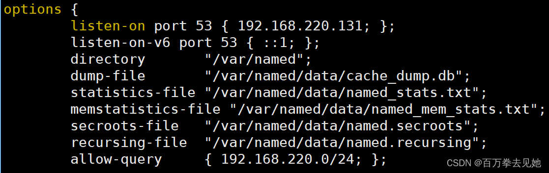 listen-on port 53 { 192.168.10.11; }; //本机IP