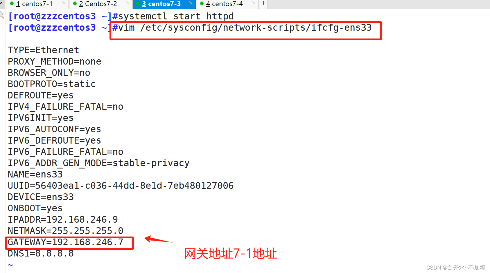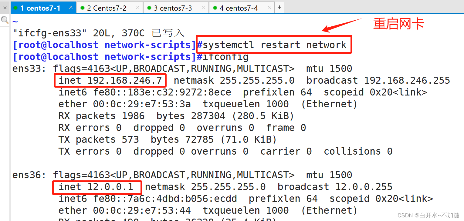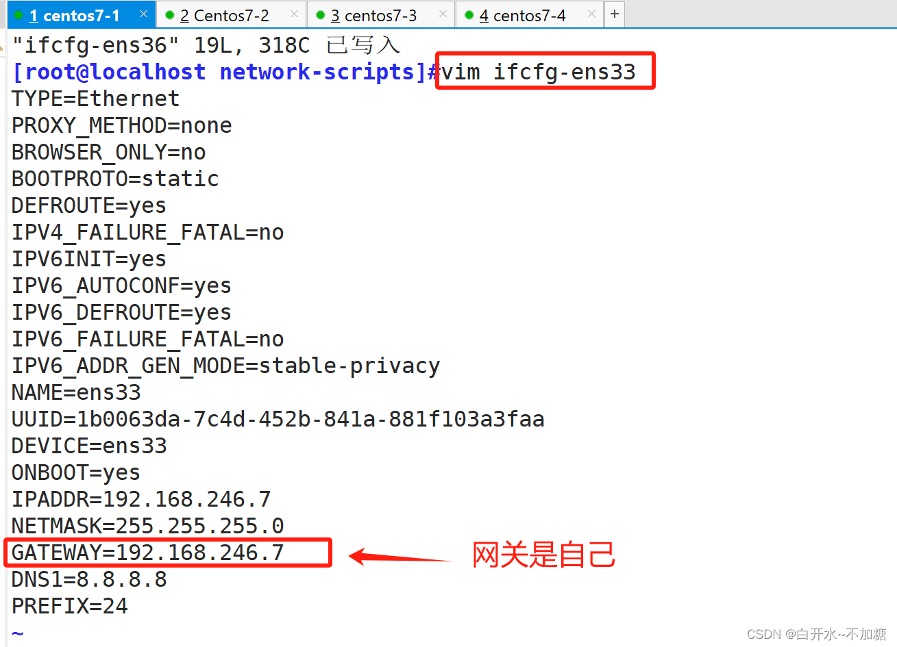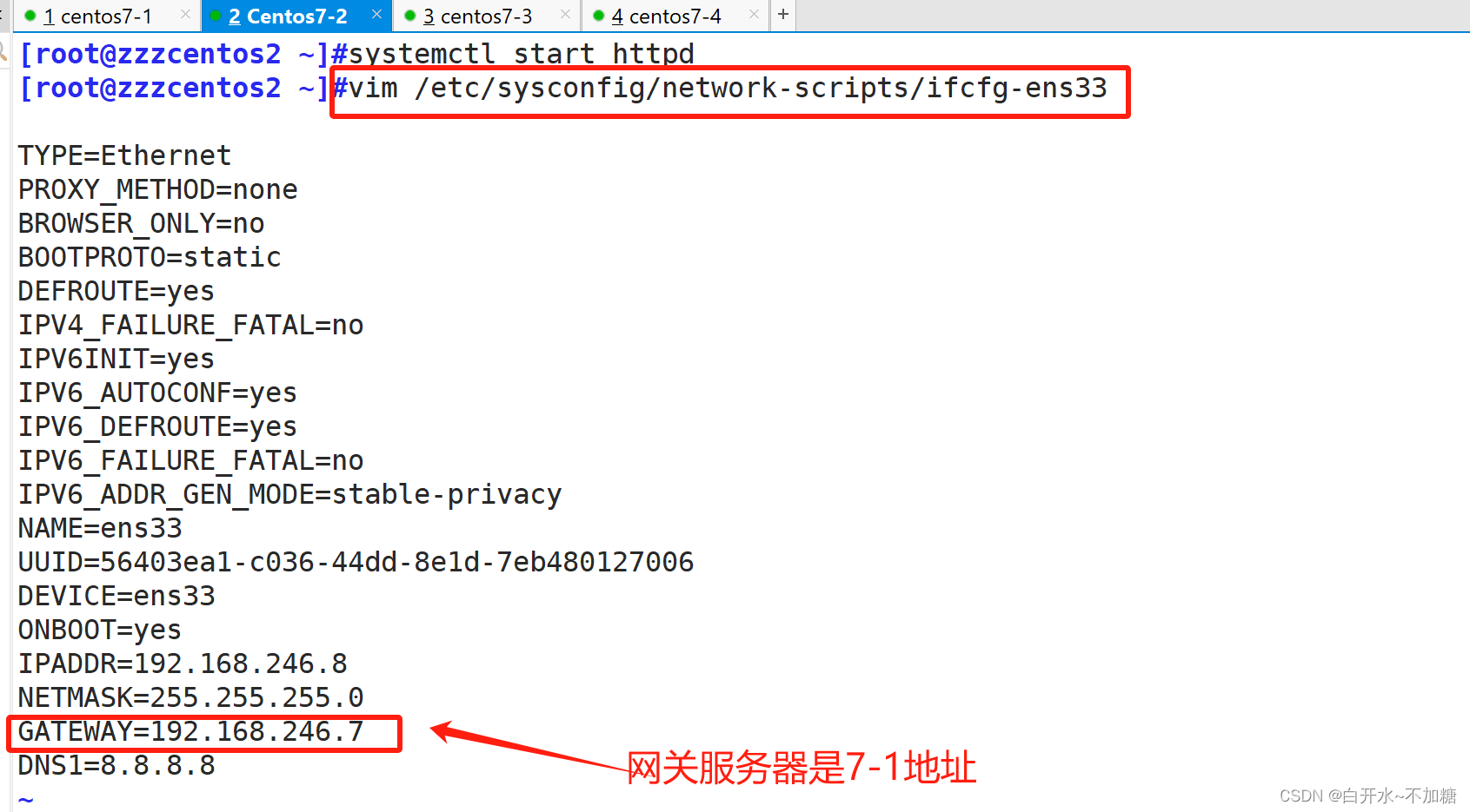 注意:MASTER的主服务器将ens33接口自动添加VIP地址,通过ip命令可以查看(ifconfig命令看不到)2.4 配置从调度器