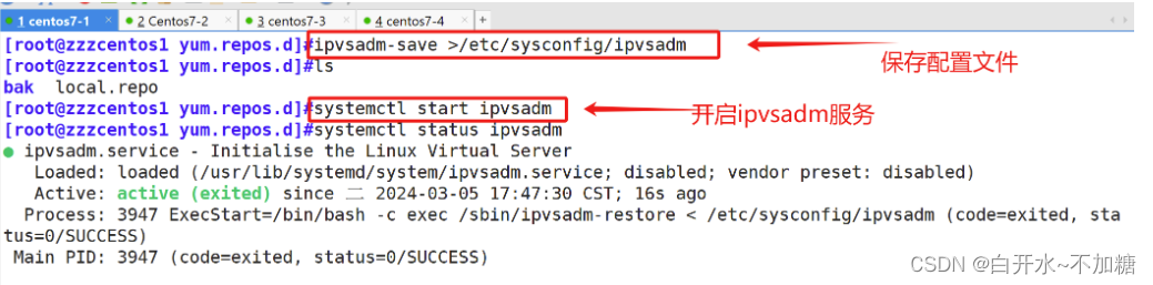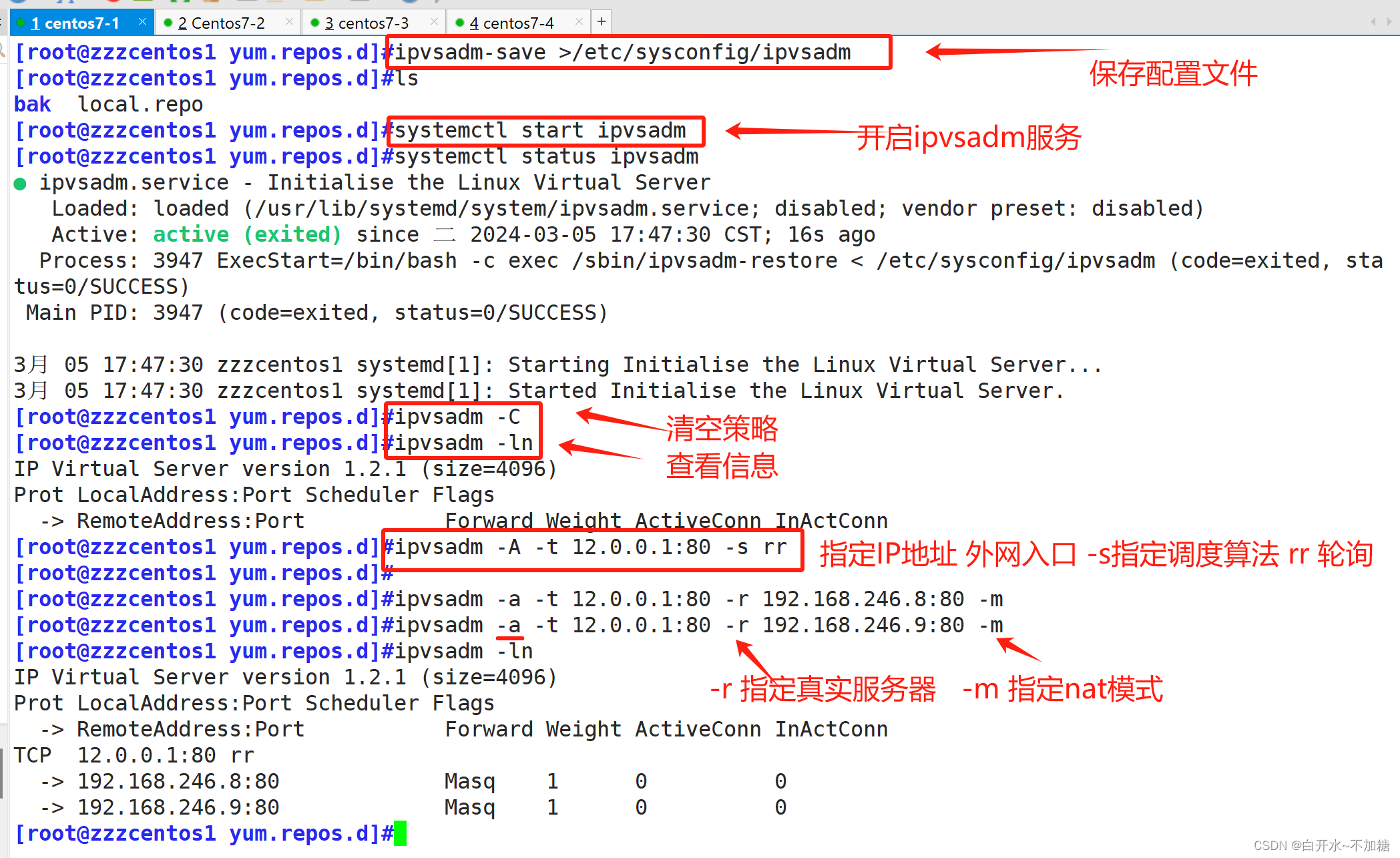 ipvsadm -S [-n] #保存,相当于ipvsadm-save