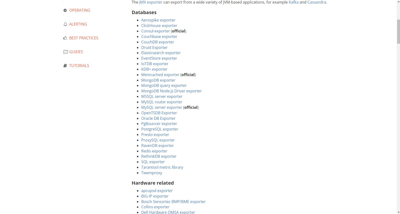 监控集成器下载地址:http://www.coderdocument.com/docs/prometheus/v2.14/instrumenting/exporters_and_integrations.html