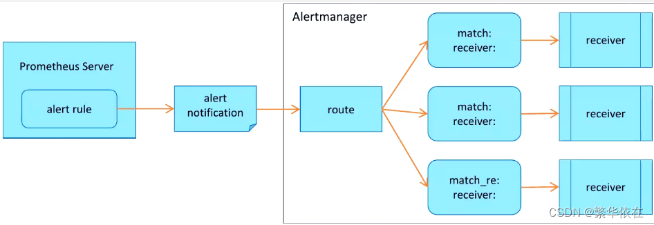 Alertmanager:告警处理组件。对告警规则产生告警信息进行处理,如:分组、抑制、静默等。