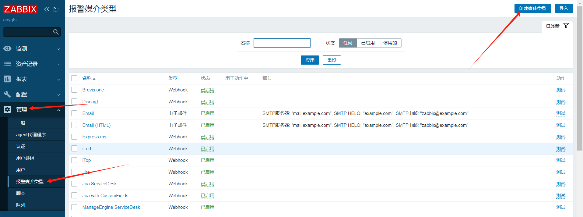 点击左边菜单栏【管理】中的【agent代理程序】,点击【创建代理】