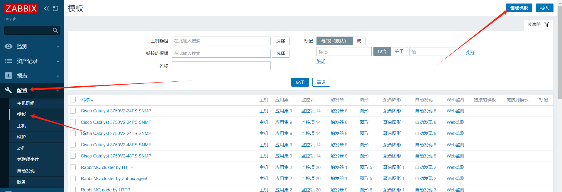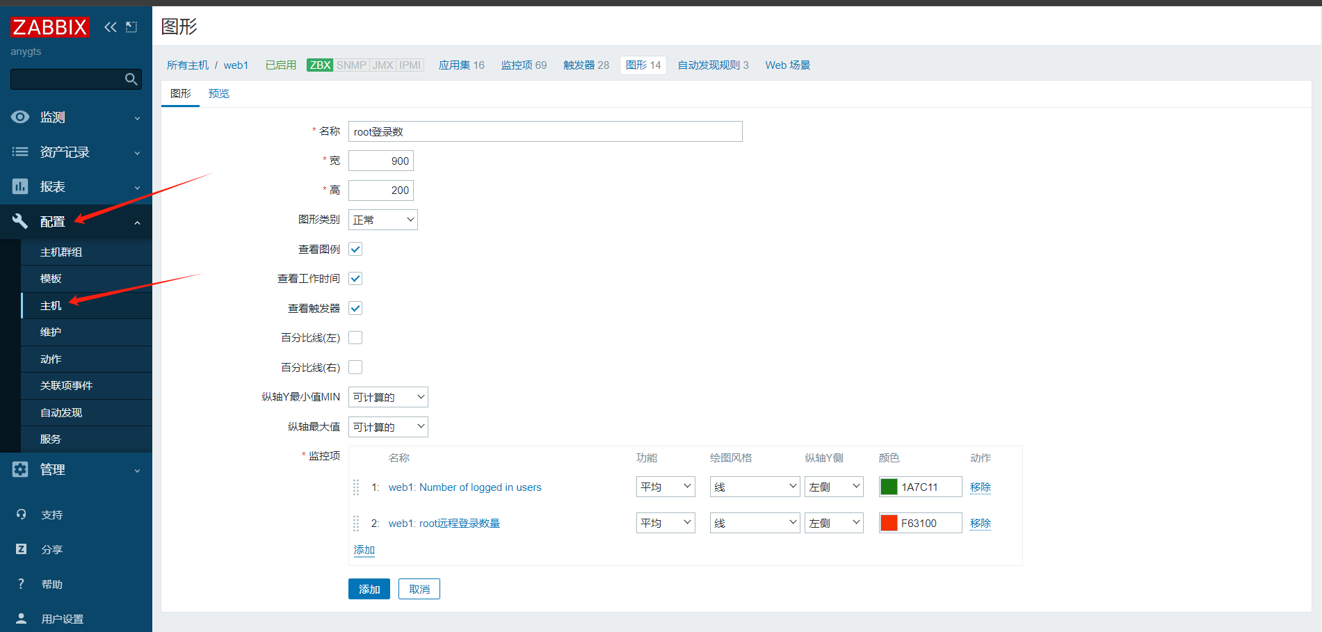 点击左边菜单栏【配置】中的【主机】,点击【创建主机】