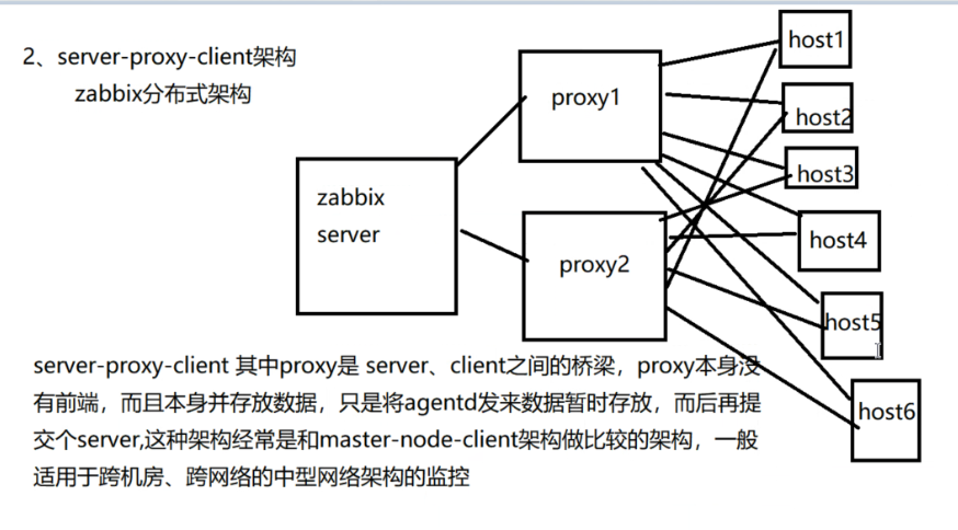 该架构是zabbix最复杂的监控架构,适用于跨网络、跨机房、设备较多的大型环境 。