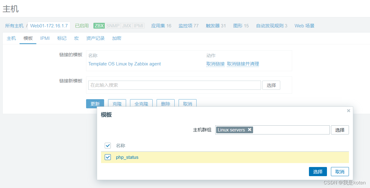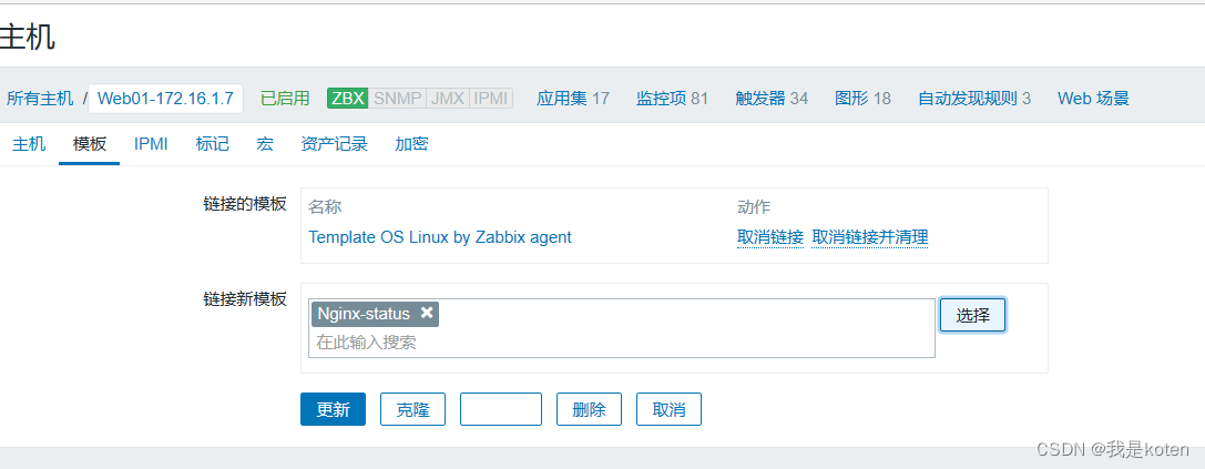 【Link new tamplates】搜索 Linux ,选择 Template OS Linux by Zabbix agent